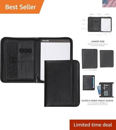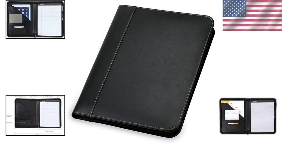 Professional Faux Leather Portfolio with Large Pocket and Secure Zipper Closure