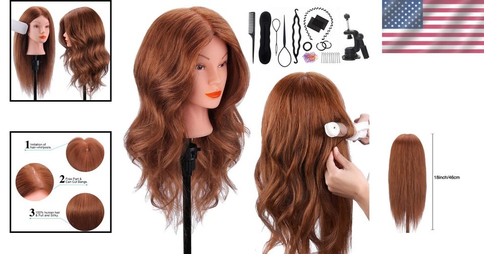 Gifting Ideal 18? Dark Brown Human Hair Training Mannequin Head with Accessories