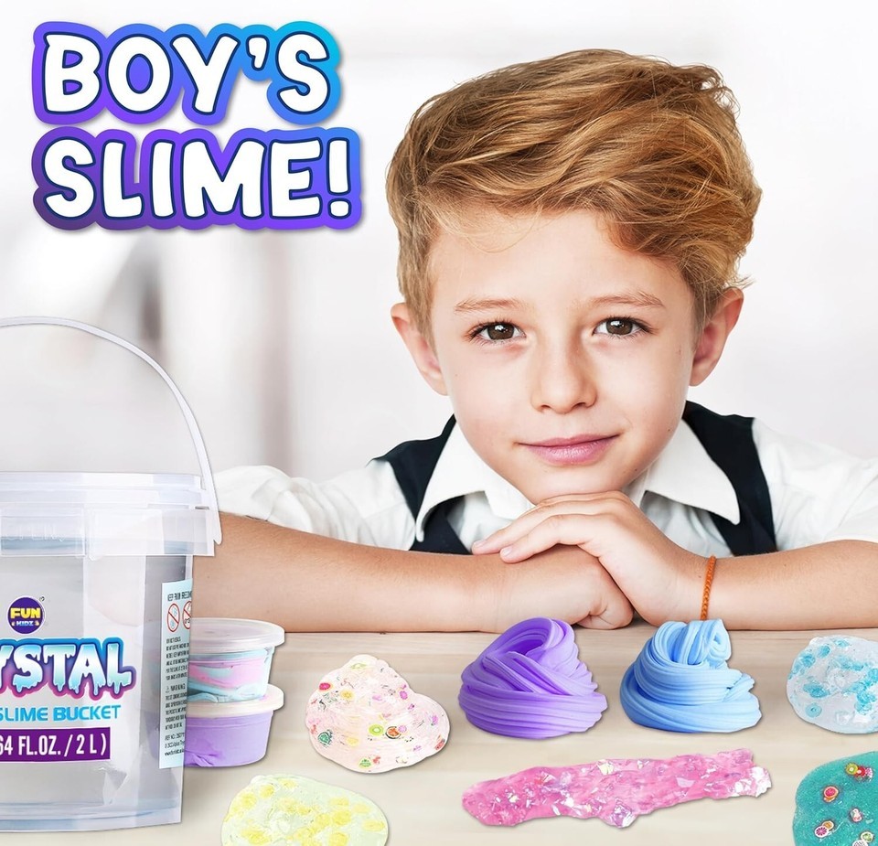 Crystal Clear Slime Bucket: 2000ML of already made water slime packed in a large bucket with a convenient carry handle for effortless transport?ideal for travel, camping, and parties.