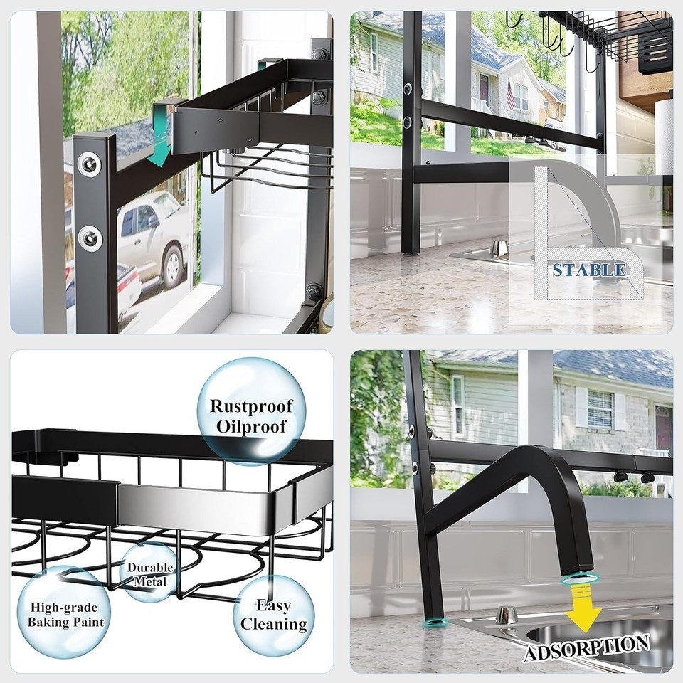 Efficient Over Sink Dish Rack: Adjustable Width & U-Shape Design for Perfect Fit