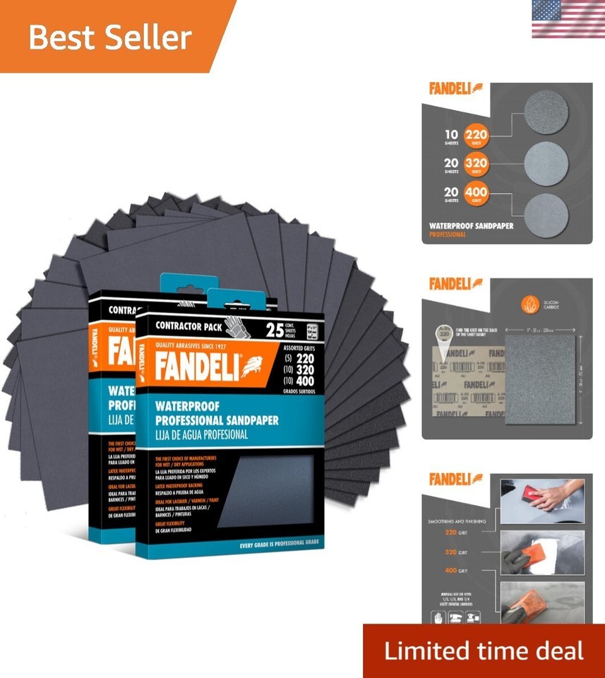 Waterproof Sandpaper Assortment - 50 Sheets, Assorted Grits 220/320/400