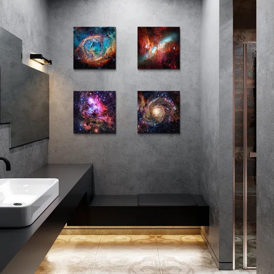 Magical Space-Themed Canvas Prints for Boys, 12x12 Nebula Art Panels, 4 Count