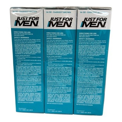 Just For Men Mustache & Beard M50 Darkest Brown Color Pack of 3 Sealed