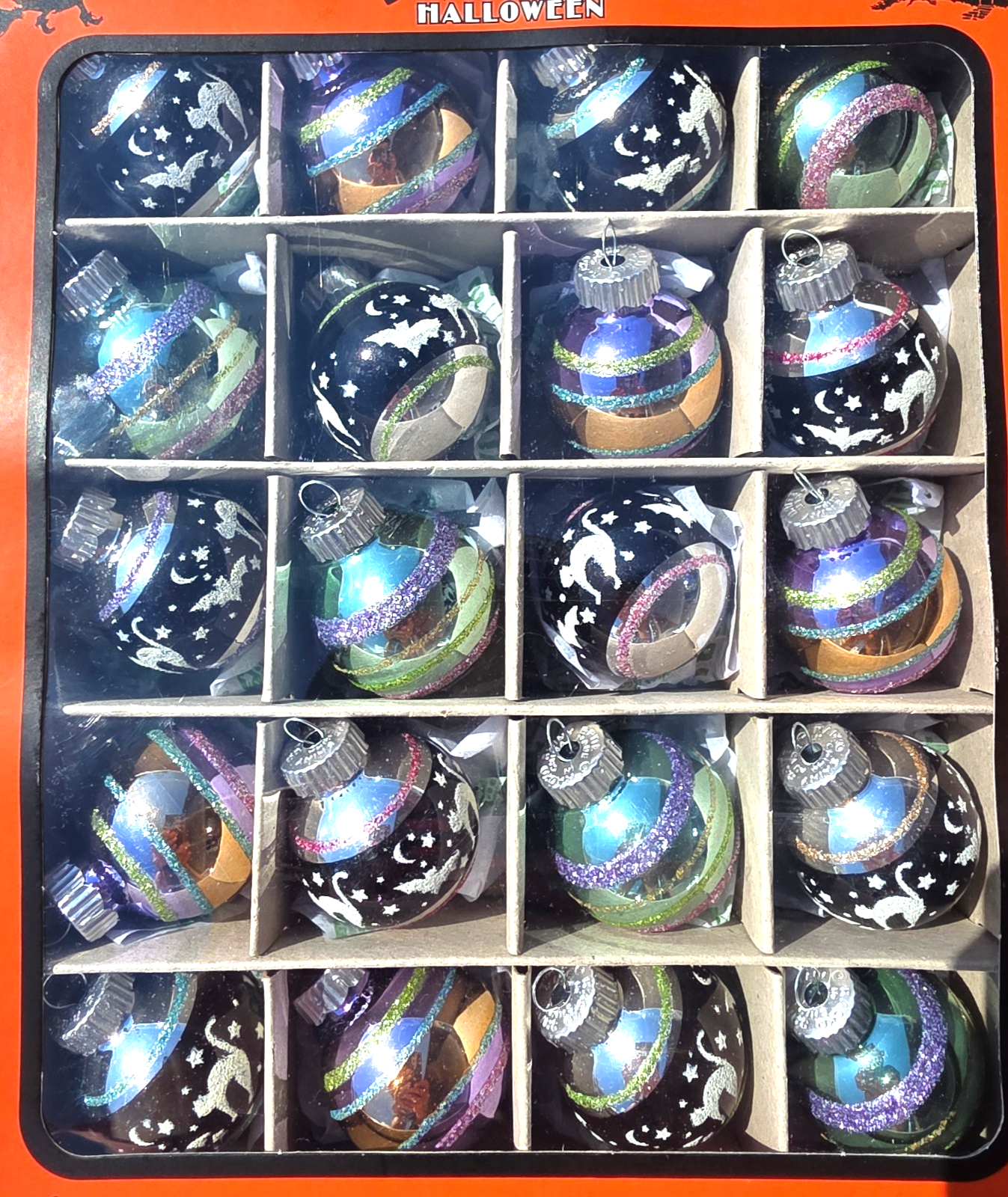 Christopher Radko Shiny Brite Halloween BATS & CATS Glass 1.5" Ornaments (40)