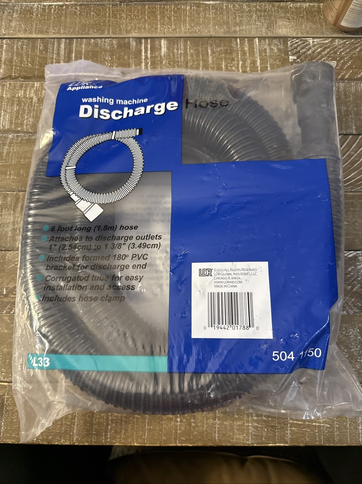 LDR 504-1150 Washing Machine Discharge Hose Appliance Universal 6ft For 1-1 3/8”