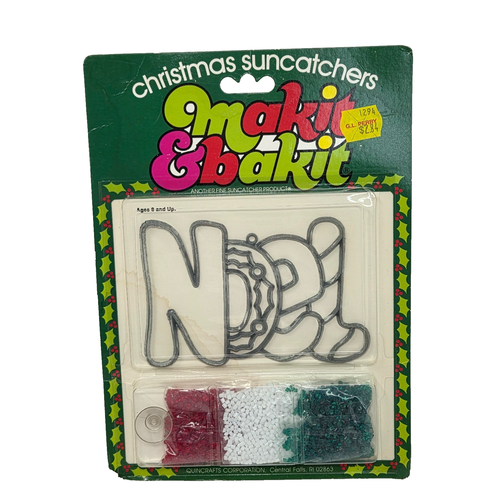 VINTAGE MAKIT & BAKIT CHRISTMAS SUNCATCHERS KIT NOEL RED GREEN WHITE NEW SEALED