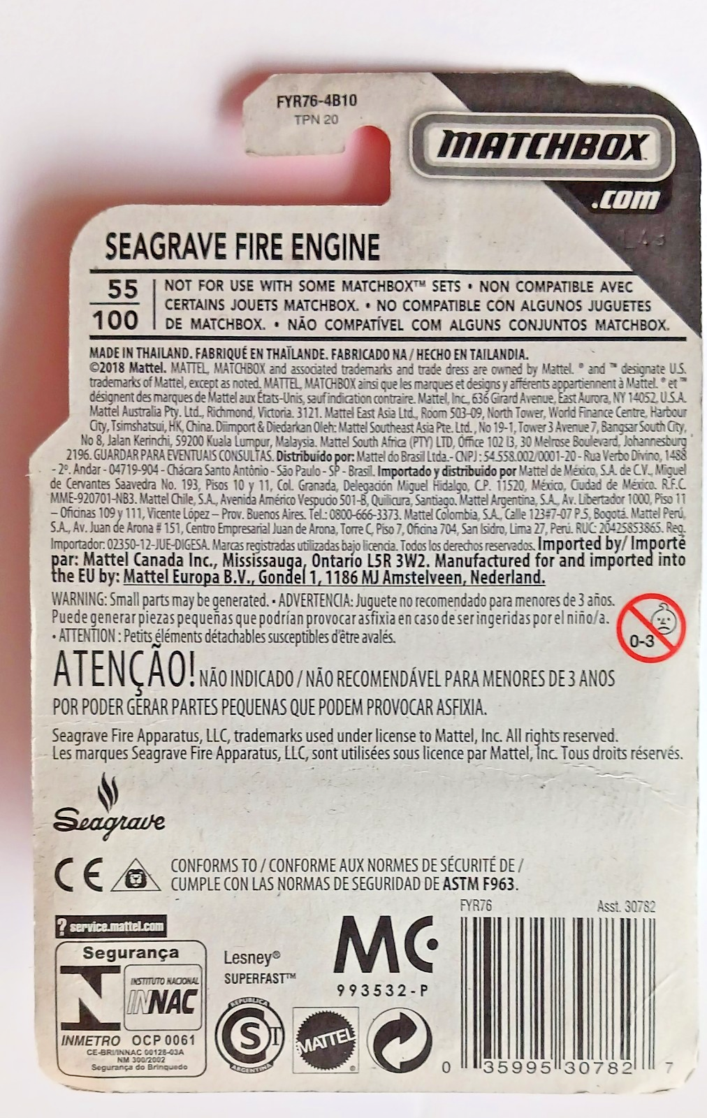 Matchbox Seagrave Fire Truck Engine Rescue Vintage Fire, New on it's 2018 Card.