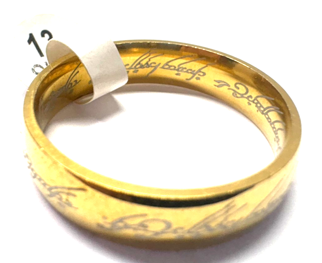 LOTR Lord of the Rings One Ring Gold Over Stainless Steel Elvish Writing Size 6