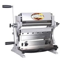 The Woodward Fab 12 in.; 3 in 1 Machine is an all in one machine useful for fabricating small parts from 20 gauge sheet metal. Features a slip roll with grooves for wire rolling, a box and pan bending brake, and a shear. It is a 20 gauge capacity machine.