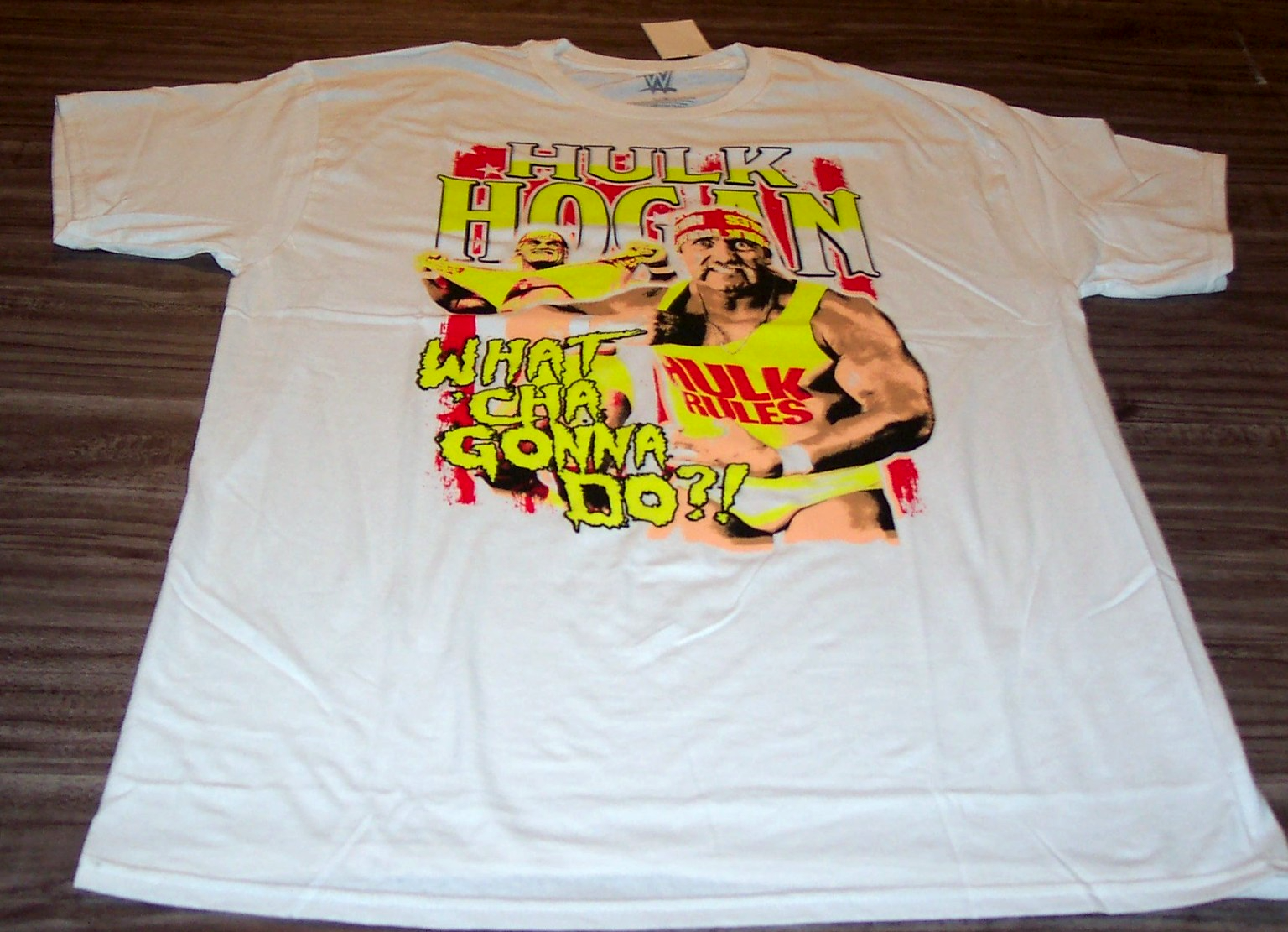 This is a Vintage Style WWF WWE HULK HOGAN What Cha Gonna Do? T-shirt. It is a size LARGE and is NEW with the tag. It is 22 inches from armpit to armpit and 31 inches in length. Combine auctions to save on shipping. AD