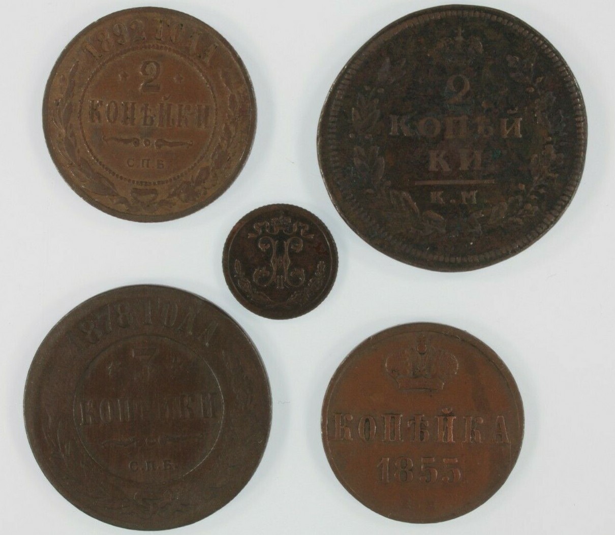 1812-1892 Russia Empire 5-Coin Set // Tsar Alexander I/II/III Nicholas I/II