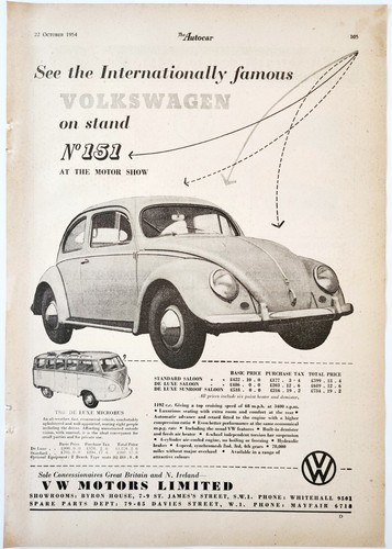 1954 Volkswagen Earls Court Import Advertisement Autocar Automobilia DWPP12C