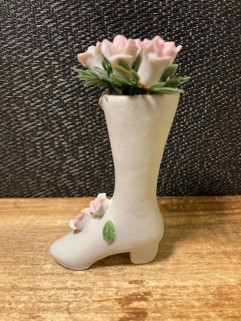 Vintage Porcelain Laced Boot with Boquete and Roses 4"