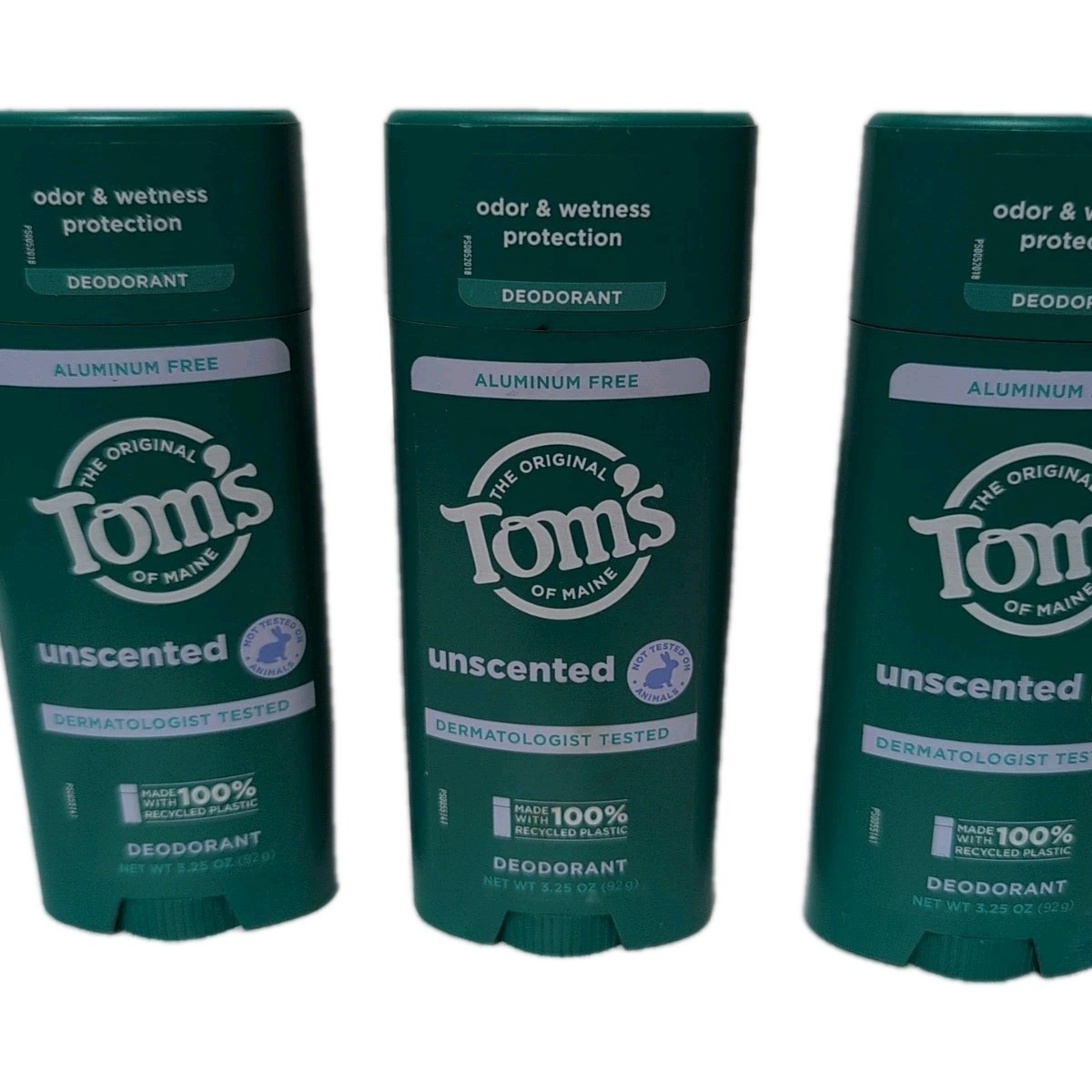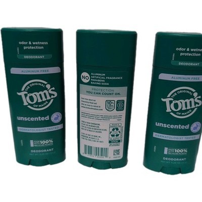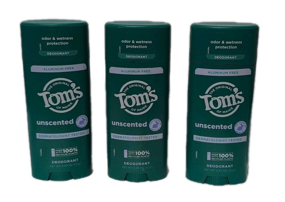Lot of 3 Tom's of Maine Natural Deodorant Unscented 3.25 oz Each NEW Original