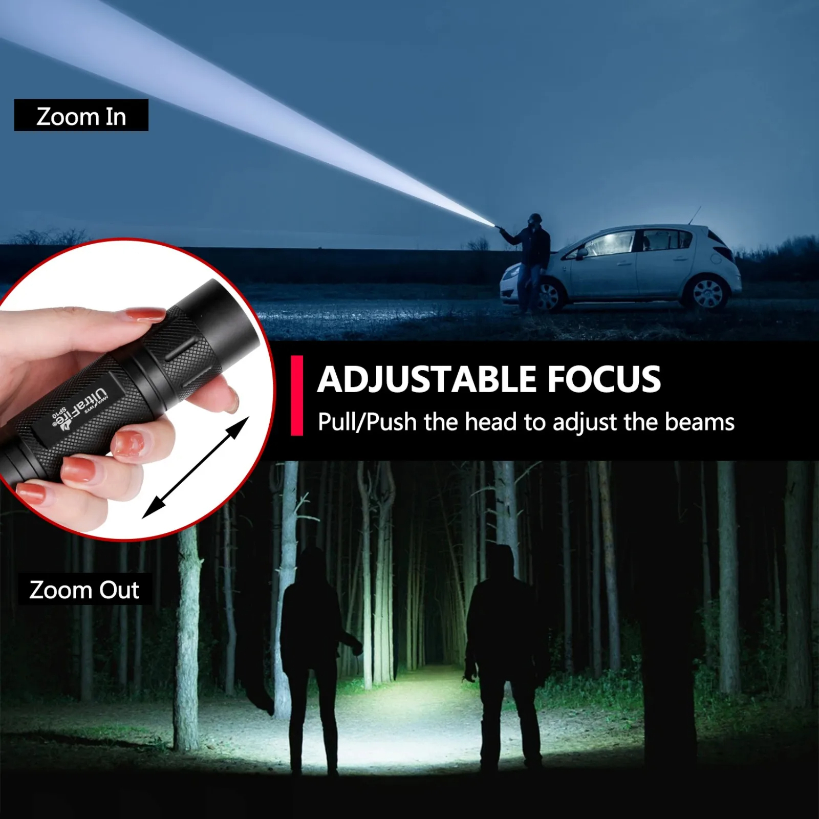 ?Professional Zoomable Optics?: Slide-to-focus mechanism adjusts from 5 spotlight (100m throw) to 120 floodlight instantly. 98% light transmission lens eliminates dark spots for perfect illumination.