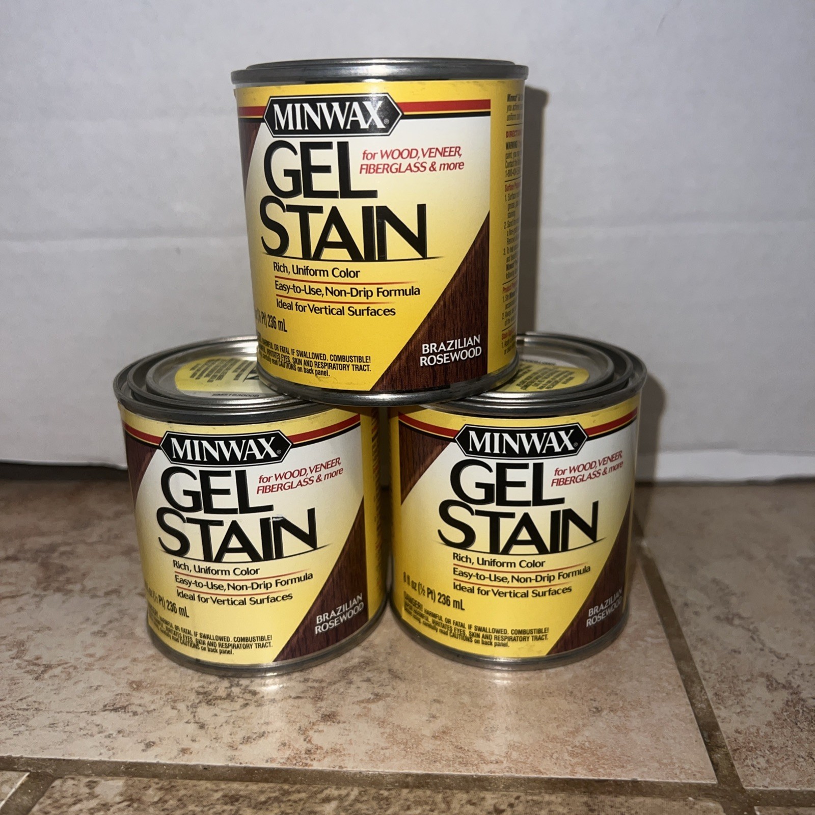 Lot Of 3 Minwax Wood Gel Stain Brazilian Rosewood 1/2 Pint 8oz Cans New discontinued