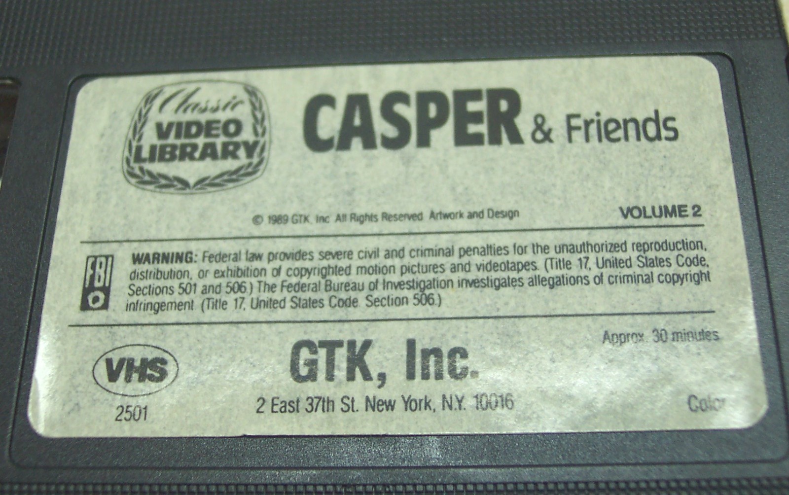 VINTAGE 1989 Casper the Friendly Ghost & Friends VOLUME 2 VHS VIDEO 1980's