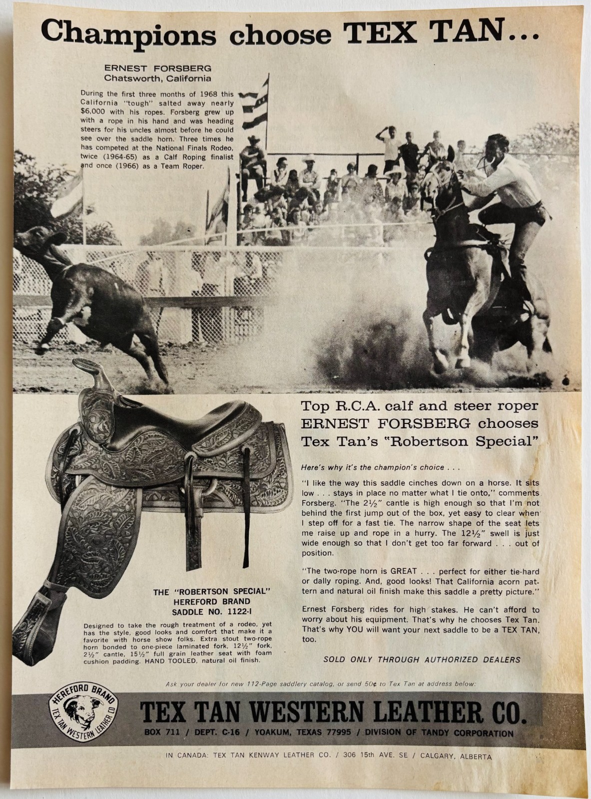 1968 Tex Tan Horse Western Saddles Advertisement Ernest Forsberg Robertson DWP9C