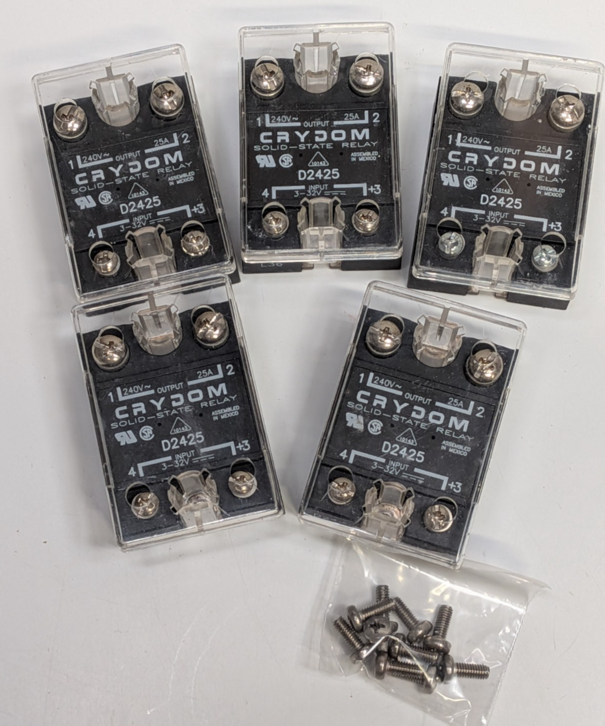 Lot of 5 USED Crydom D2425 Solid State Relay 25A 24-280V 25A Load 3-32Vdc Input