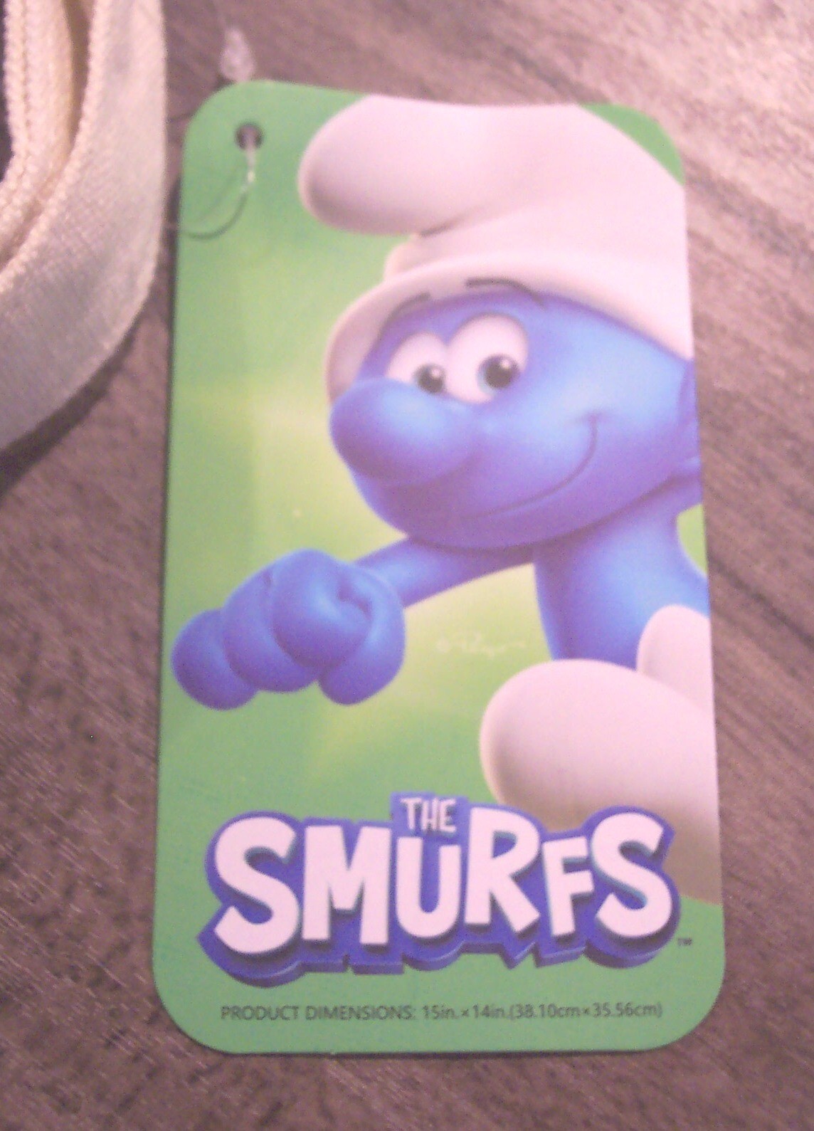 VINTAGE STYLE The Smurfs Village 15" x 14" FABRIC TOTE BAG NEW Papa Smurf
