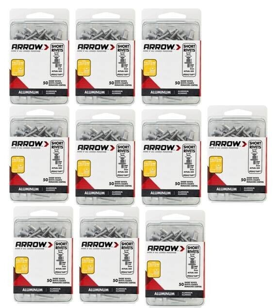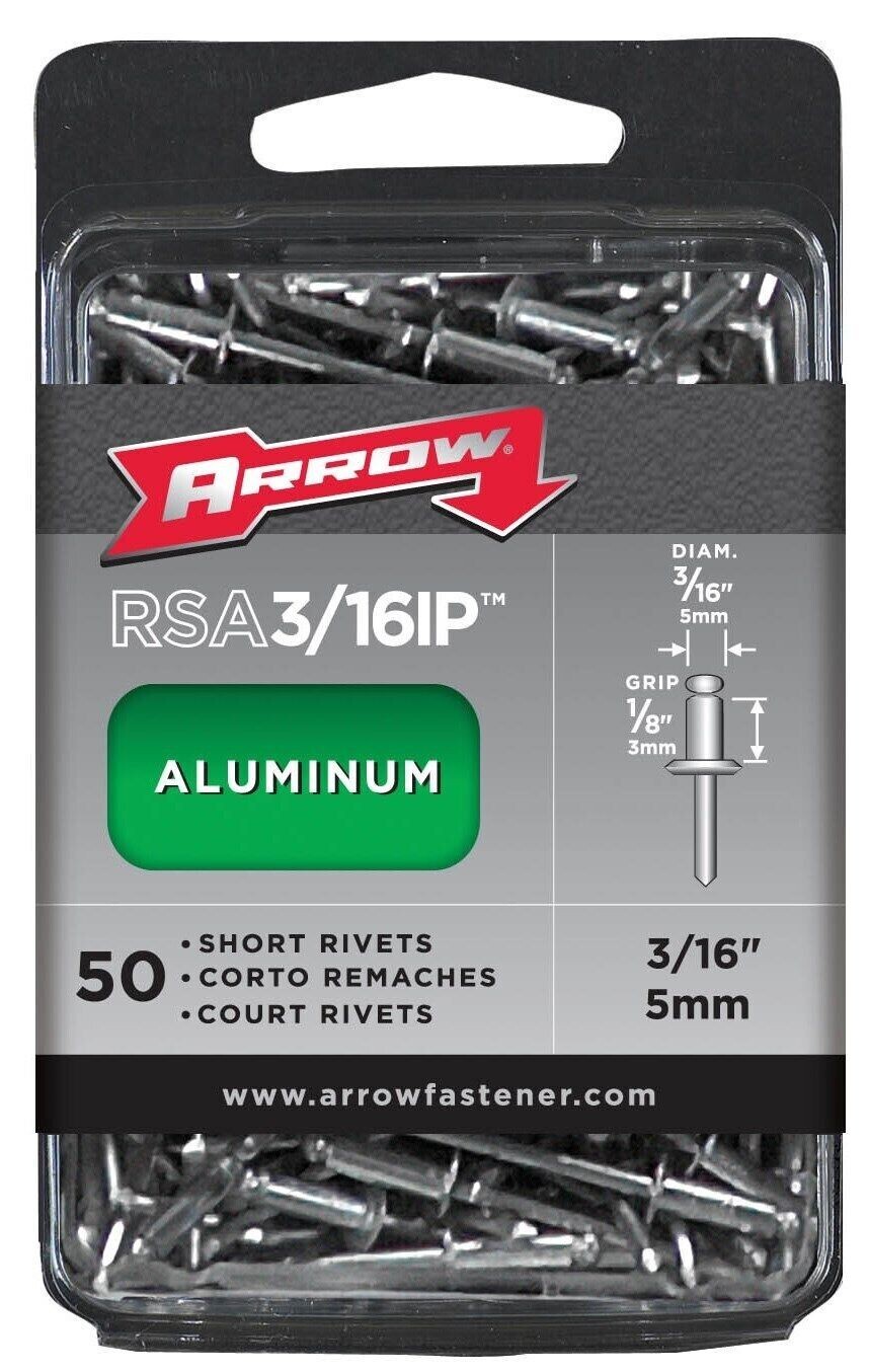 Short Rivets 3/16" x 1/8" Aluminum, 50-ct/PK - Arrow Fastener RSA3/16IP (10-PK)
