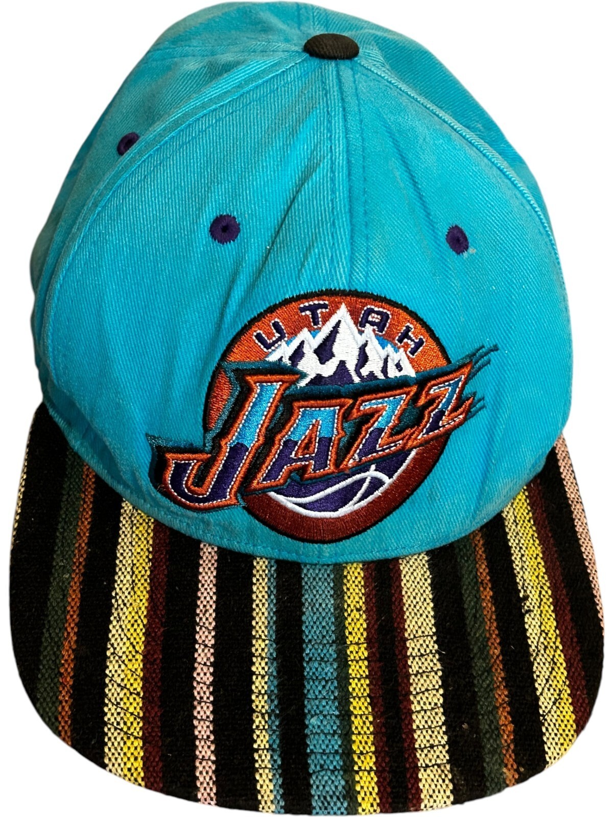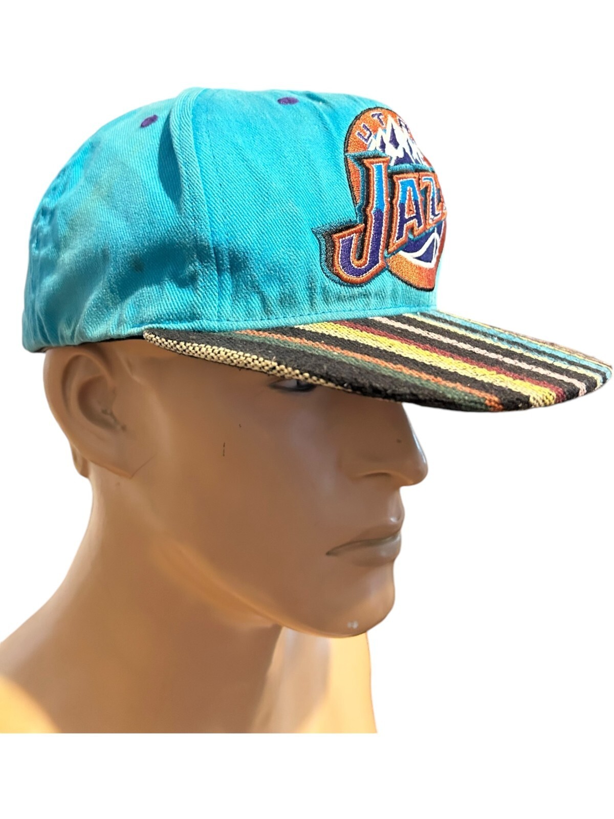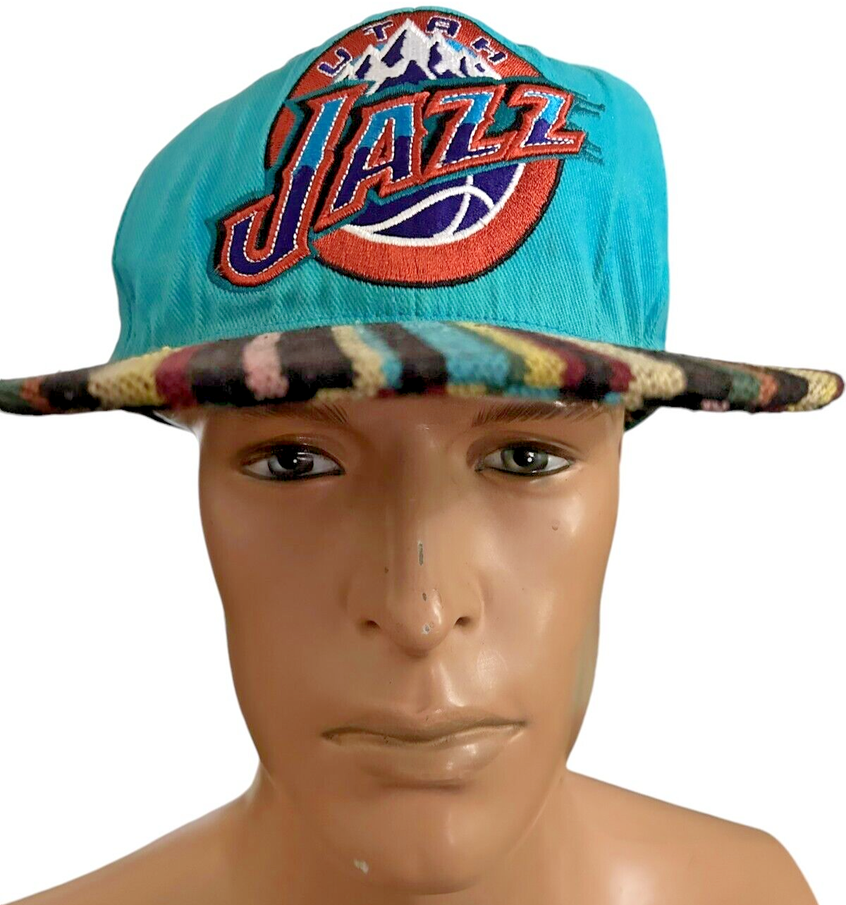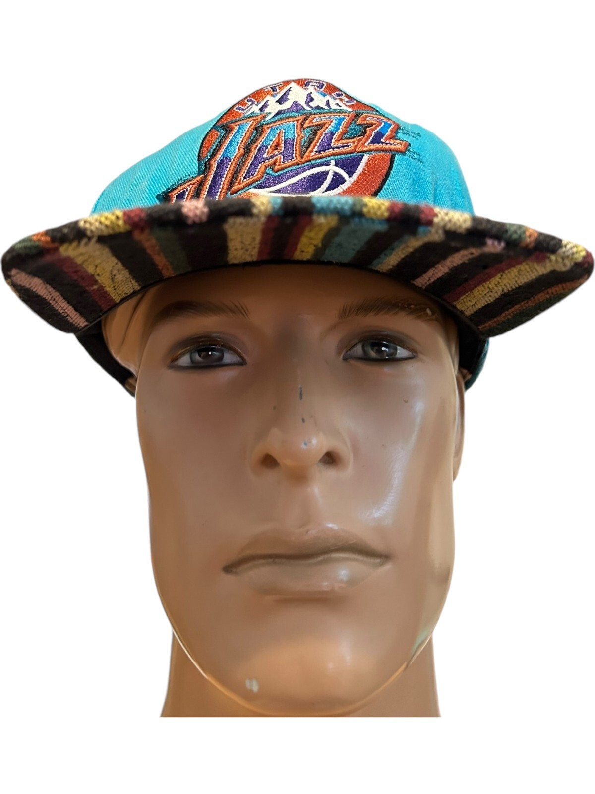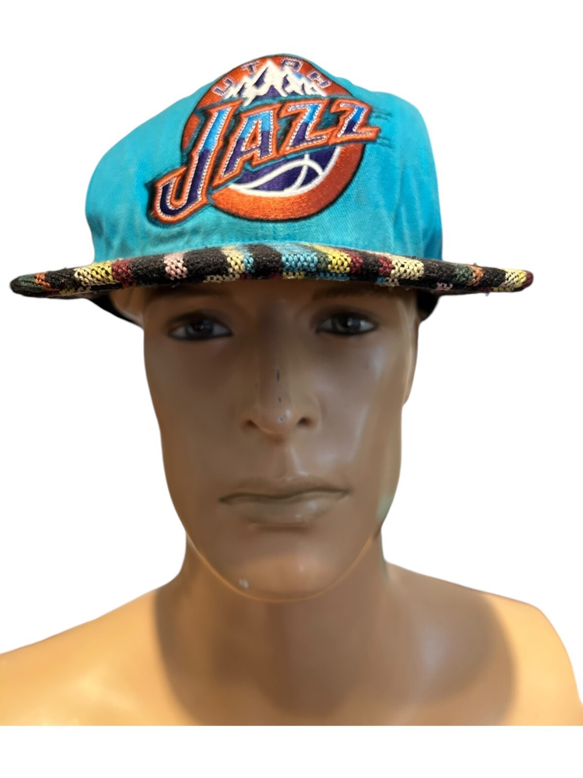 Very unique VTG mitchell ness hardwood classics utah jazz snapback hat with yarned native-striped flat bill