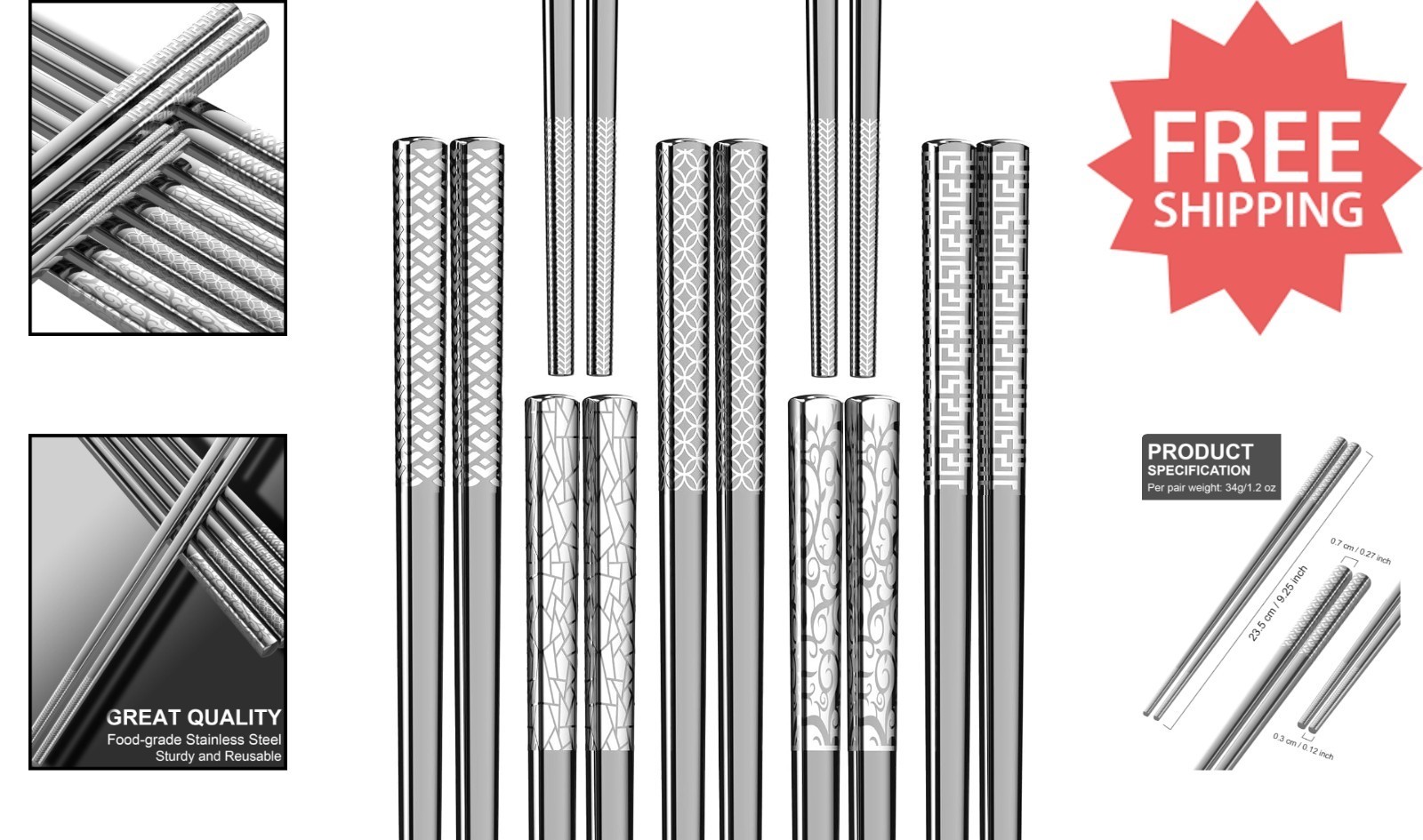 Elegant 5-Pair Metal Chopsticks Set - 304 and 23 similar items