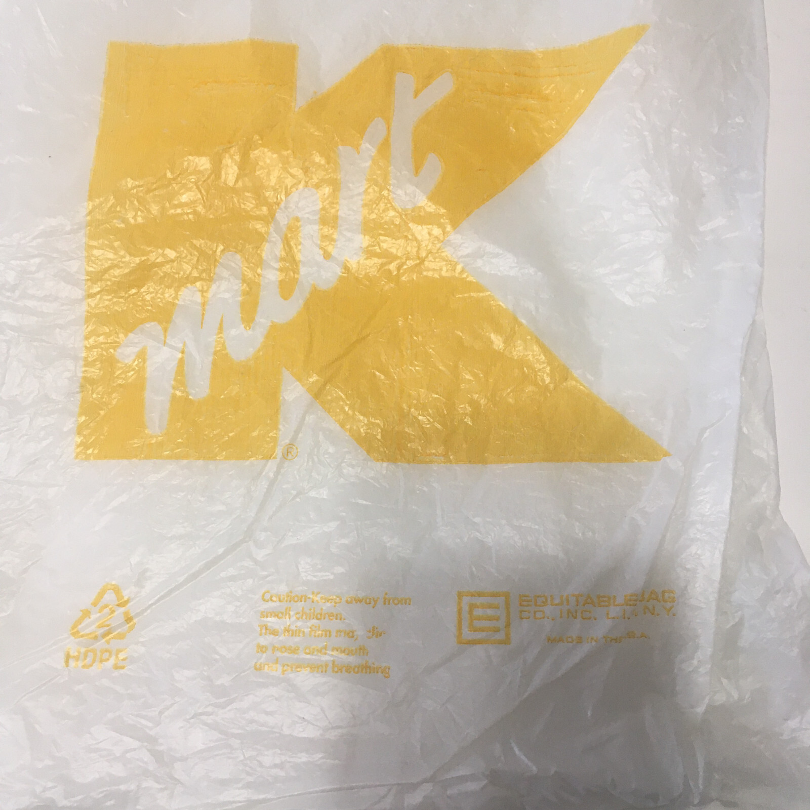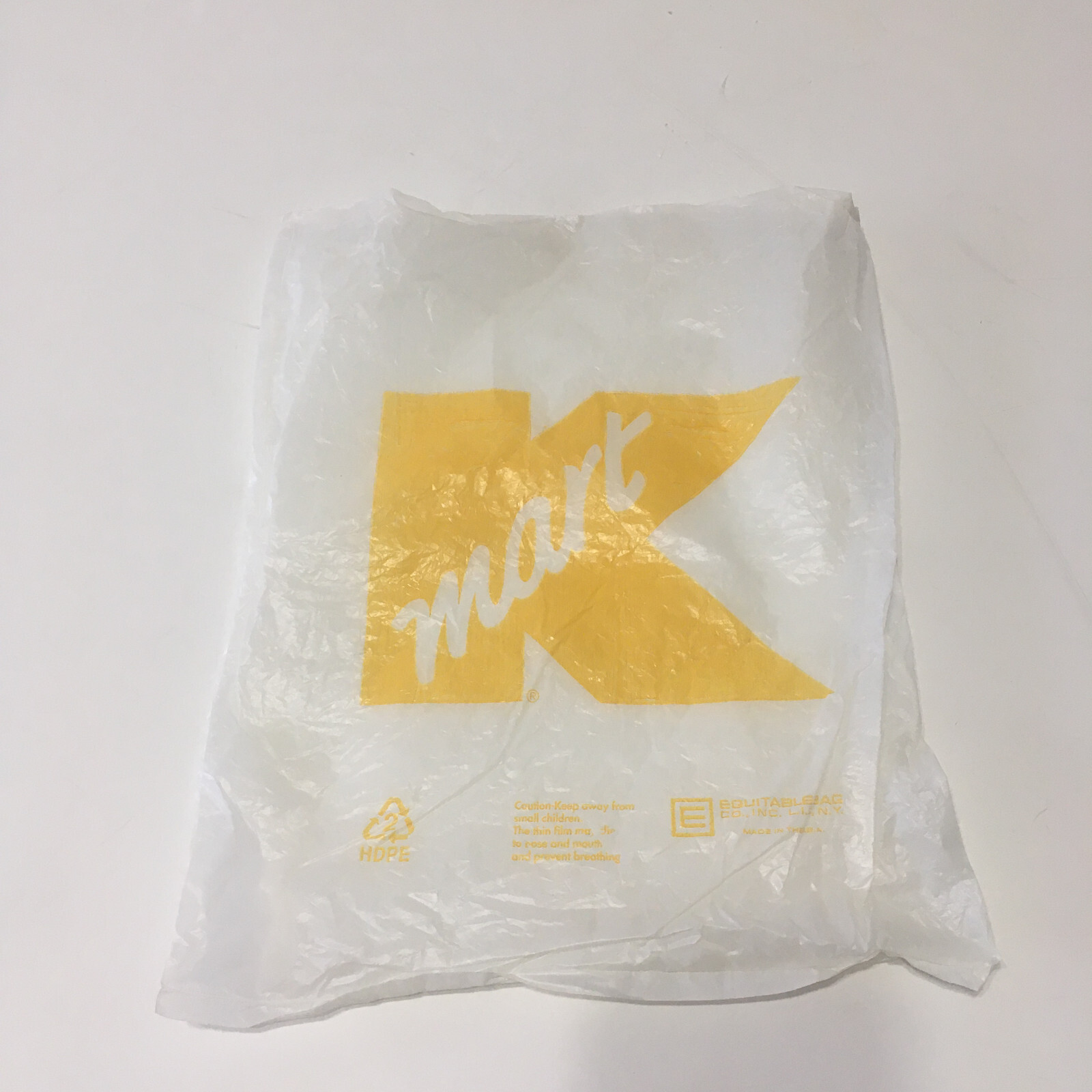 Small plastic Kmart store shopping bag Large yellow K graphics movie photo prop
