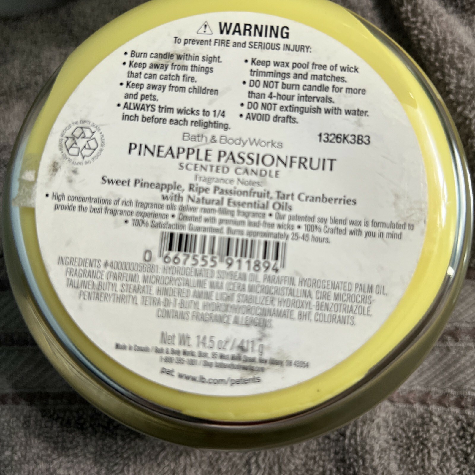 Bath & Body Works Pineapple Passionfruit 3 Wick Candle 14.5 oz Used Discontinued
