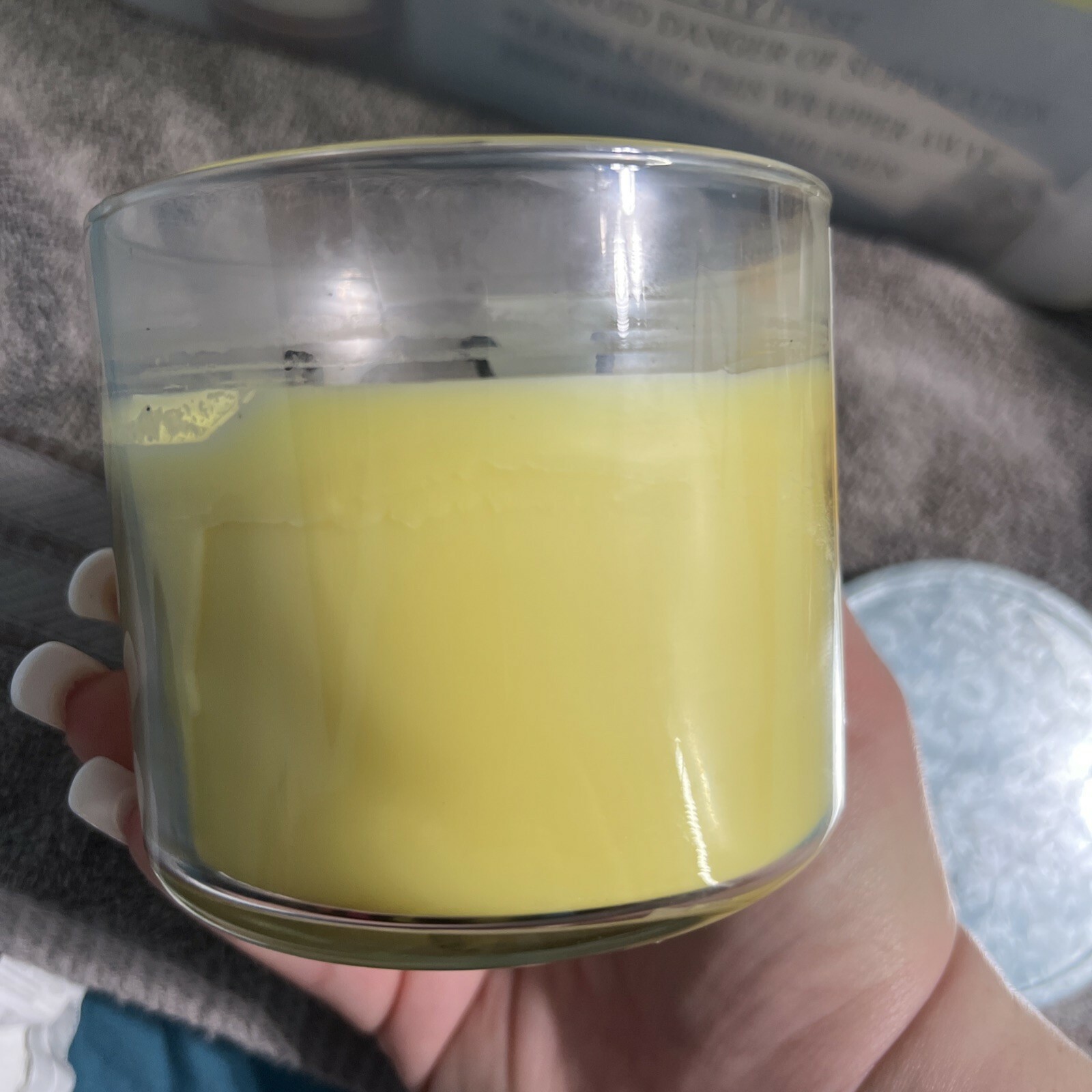 Previously burned? Preowned? used? still lots of candle left!! Looks like 1/2? has been used.