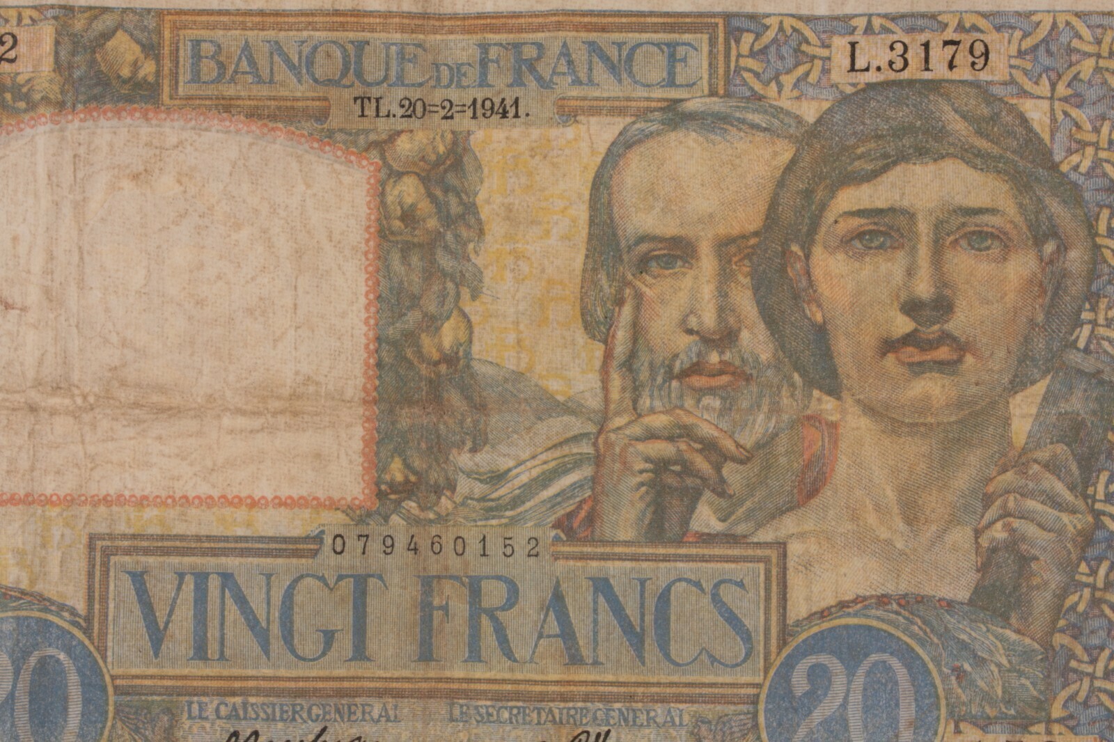 1941 France 20 Francs Note // "Science et Travail" Very Good Condition // P#92b