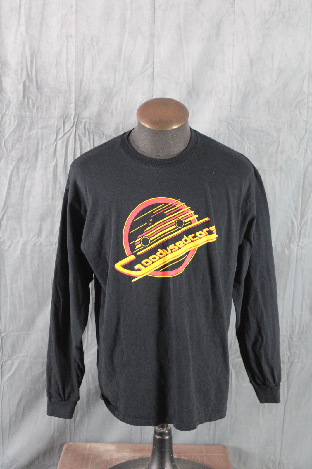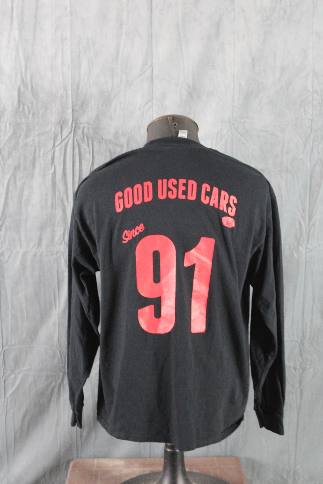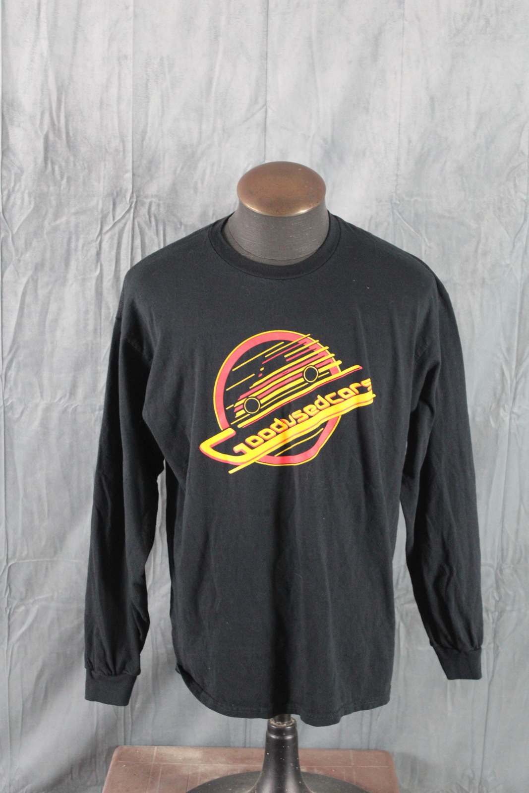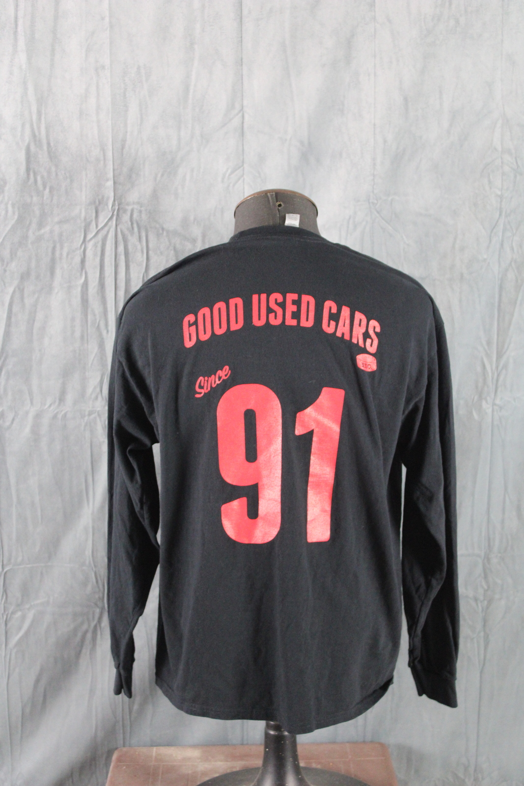 Up for sale is a local graphic t-shirt. It is a long-sleeve shirt with a black base colour. The front of the shirt has the Good Used Cars speeding skate logo on the front. The back of the shirt has since 91 screened on. What a great shirt do not miss out on it.