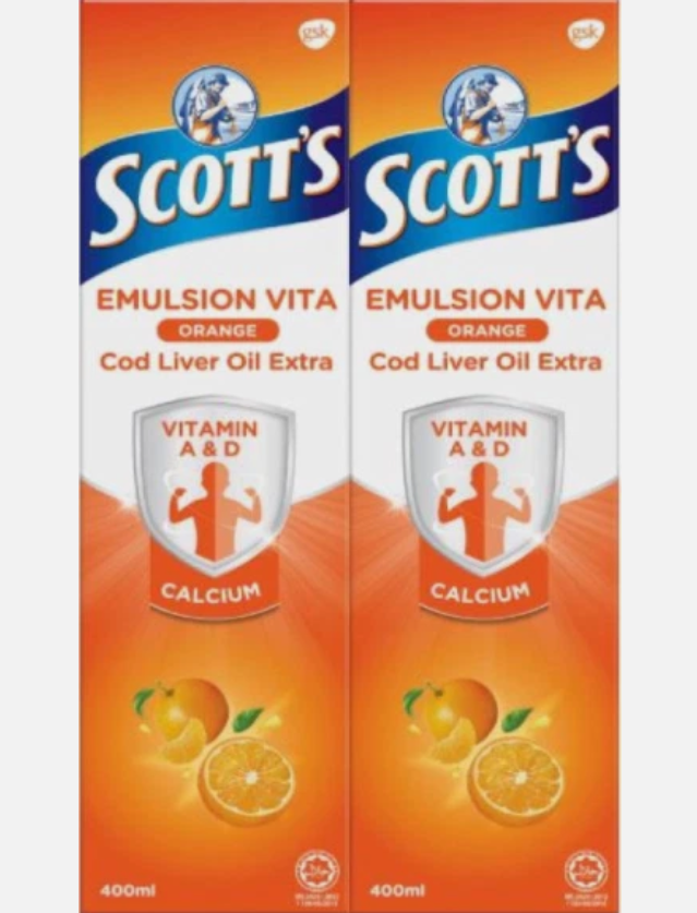 2 X 400ml Scott's Emulsion Cod Liver Oil Orange Flavour Vitamin A & D