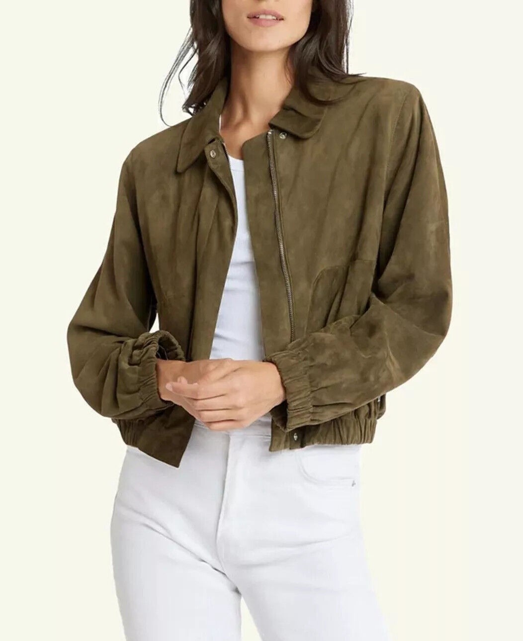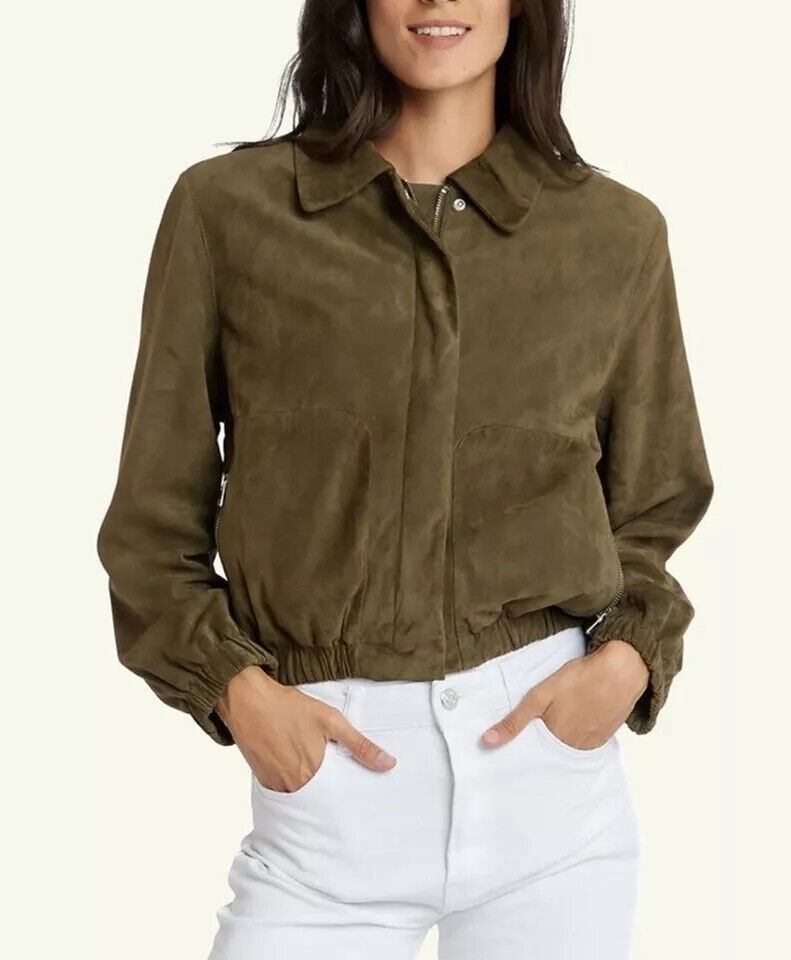 Hecho a mano Mujeres Verde Genuino Suave Pura Gamuza Cuero Chaqueta Motociclista Casual Elegante / US
