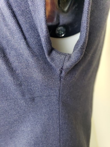 One tiny seam split at the left underarm (looks like a thread broke) and some underarm residue. No stains, moth holes or repairs. Only a mild storage odor.