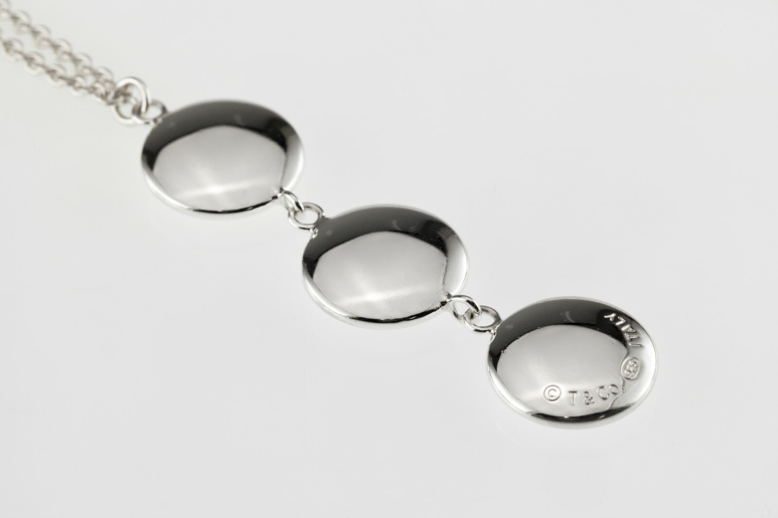 Tiffany Co. Sterling Silver Triple Disk Drop Pendant on 16" Chain
