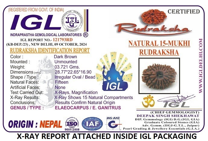 15 Mukhi Rudraksha / Collector Fifteen Face Rudraksha - Nepal - IGL Certified