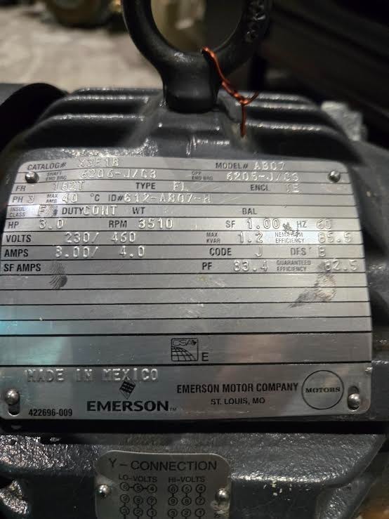 Emerson 3hp 3.0 HP Motor X3E1B 3510 rpm 230/460v Type FL AB07 182T 3PH SALE NEW $329