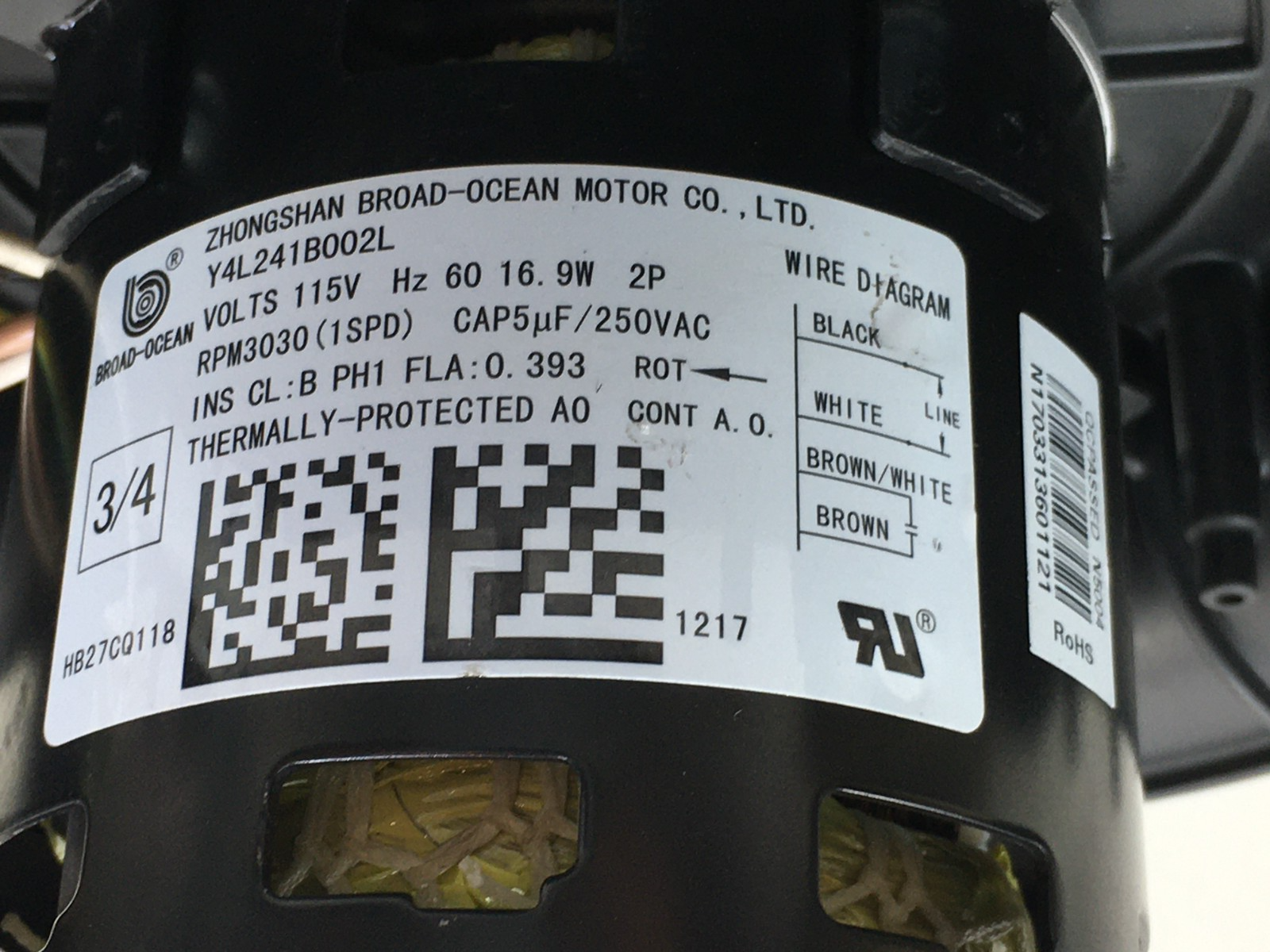 Zhongshan BroadOcean HB27CQ118 Draft Inducer Blower Motor Y4L241B002L used MS353