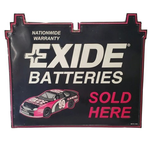 Vintage Exide Batteries Sign Gas Battery Oil Garage NASCAR Jeff Burton Metal