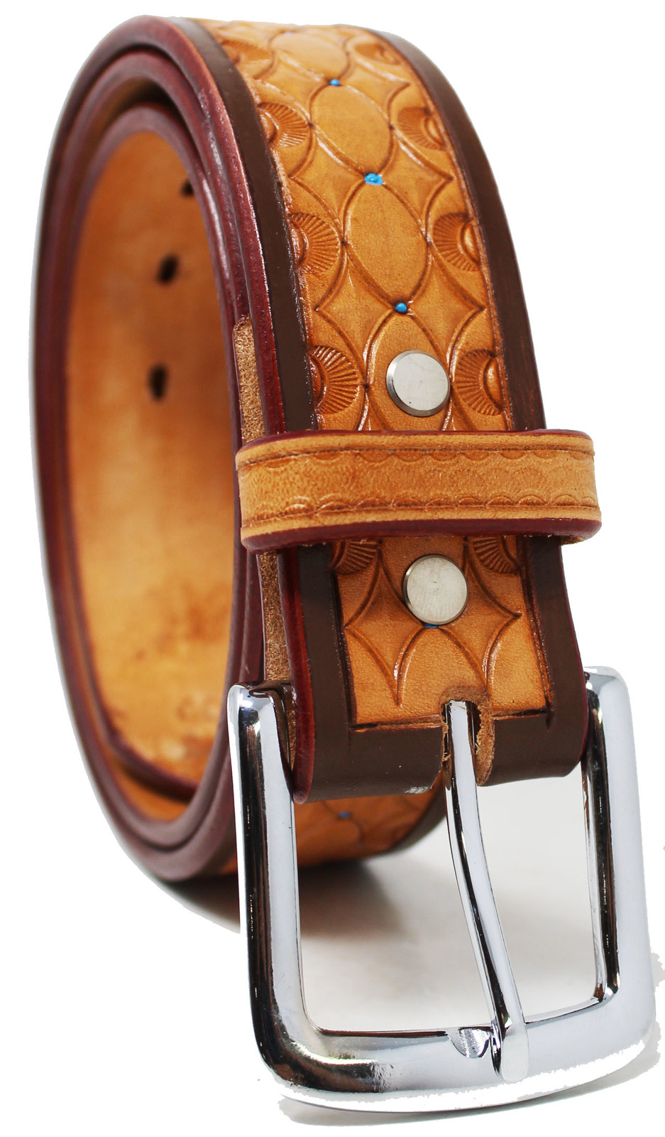 Challenger belt made from 100% full-grain genuine leather. Belt comes accented with a hand-tooled floral tooled design throughout. Complete with a silver removable buckle. We recommend to go 2" up from your waist size for a comfortable fit.