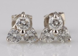 Authenticity Guarantee 14k White Gold 0.90 carat Three Diamond Cluster Stud ...