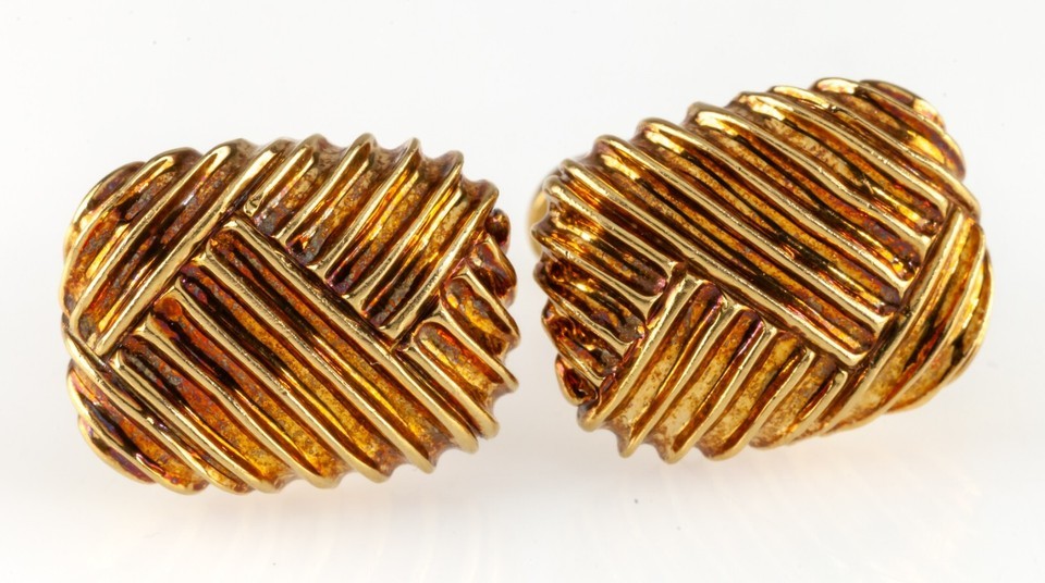 Authenticity Guarantee Van Cleef & Arpels Vintage 18k Yellow Gold Ribbed Tex...