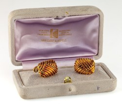 Van Cleef Arpels Vintage 18k Yellow Gold Ribbed Textured Cufflinks w/ Box