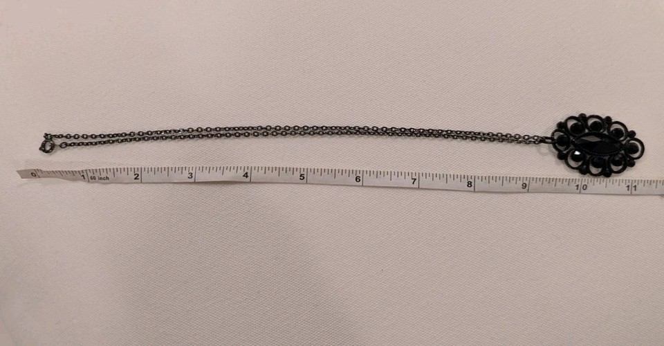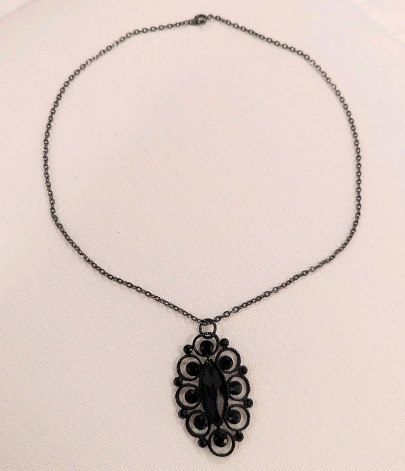 Black Pendant Necklace Chain Statement Victorian Vintage Y2K 90s Punk Retro