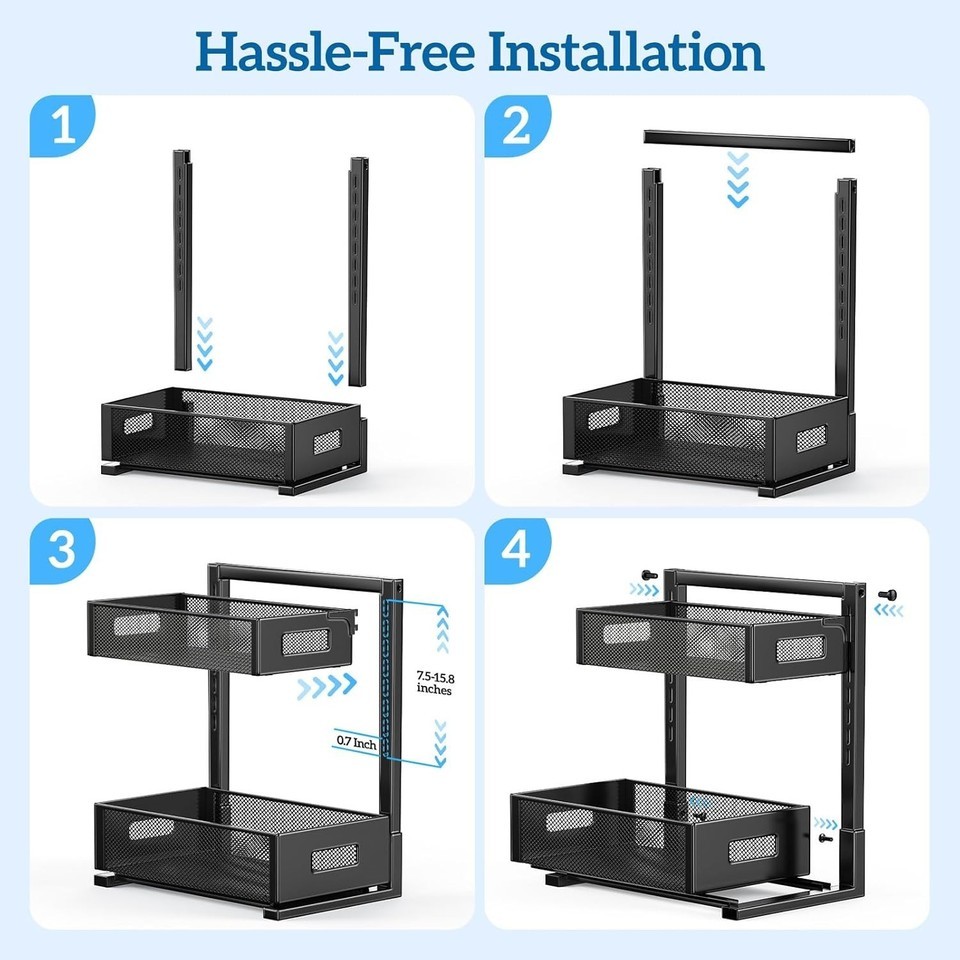 Hassle-Free Installation: No need for drilling or power tools. Our under - sink storage unit is designed for a hassle - free setup. Simply follow the easy steps, and it'll be ready to use in minutes, saving you time and energy.