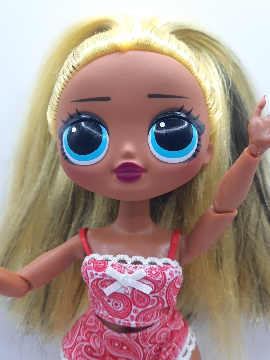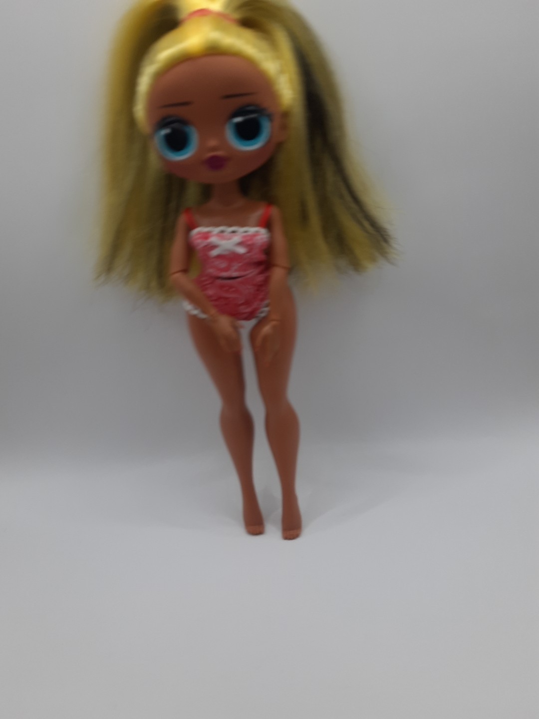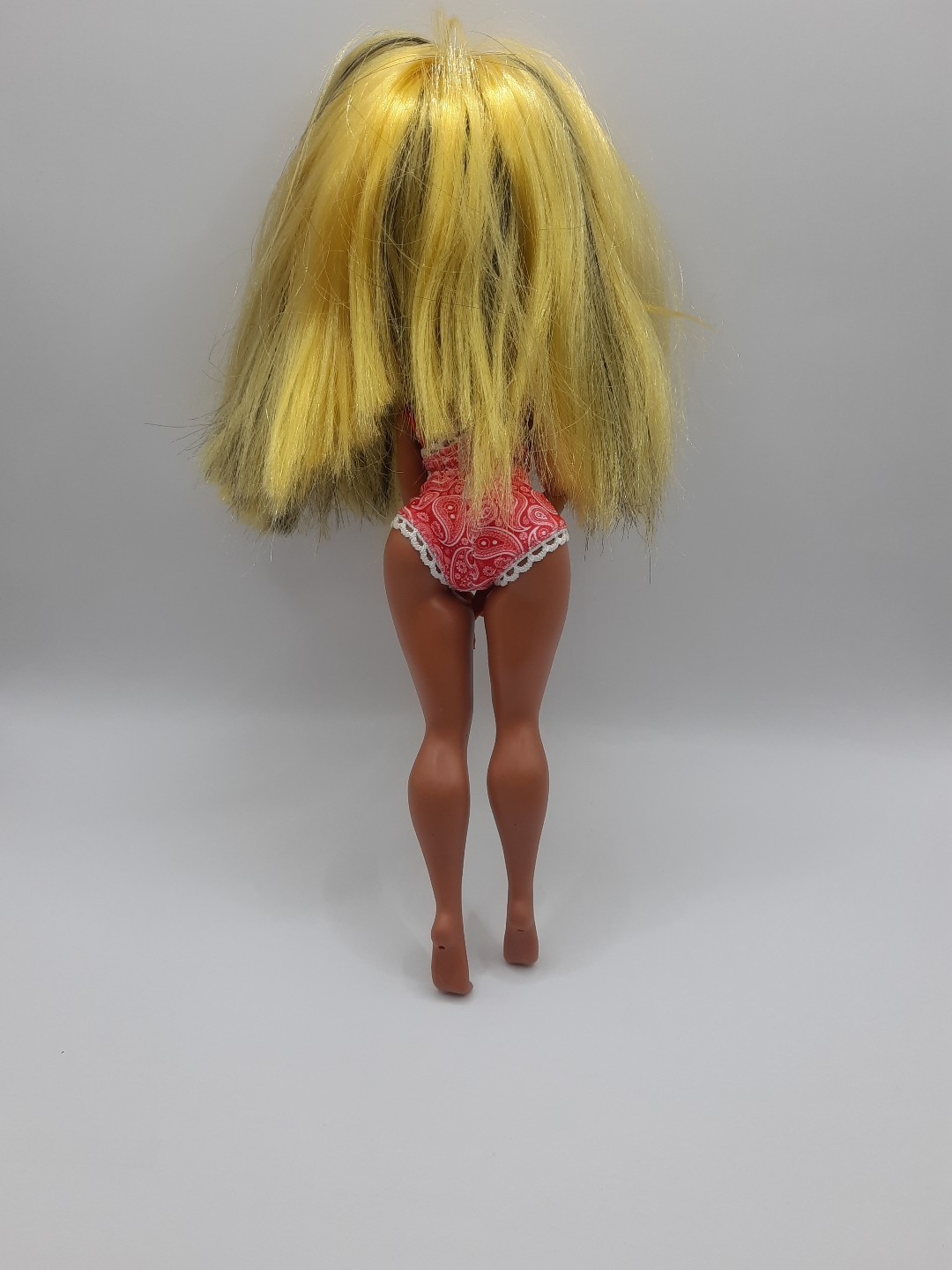 This dolls is preowned and in good condition, she doesn't have her earrings, her clothes are not original but still has alot of life left in her. Her hair needs brushed more but I just put it up in a pony