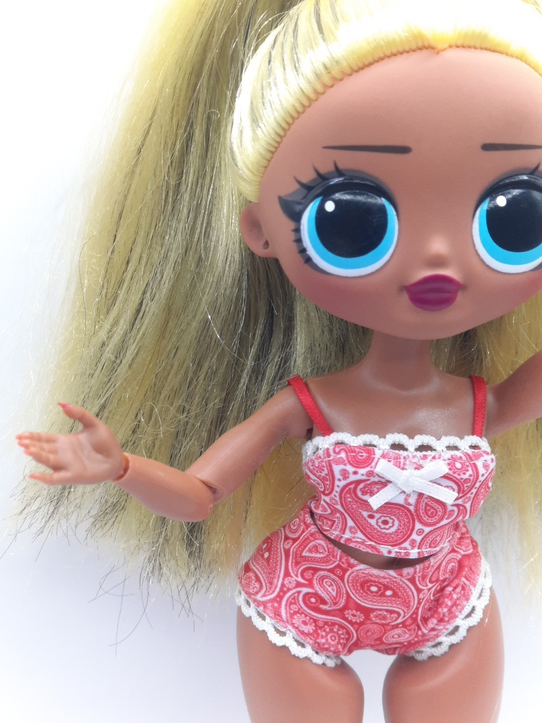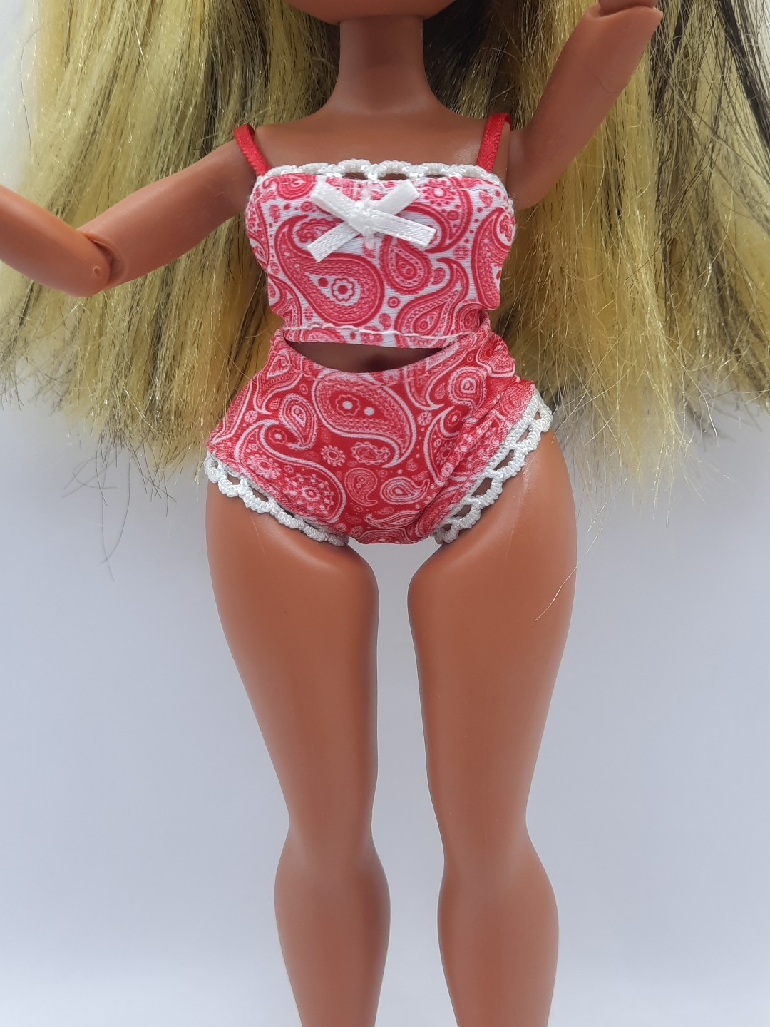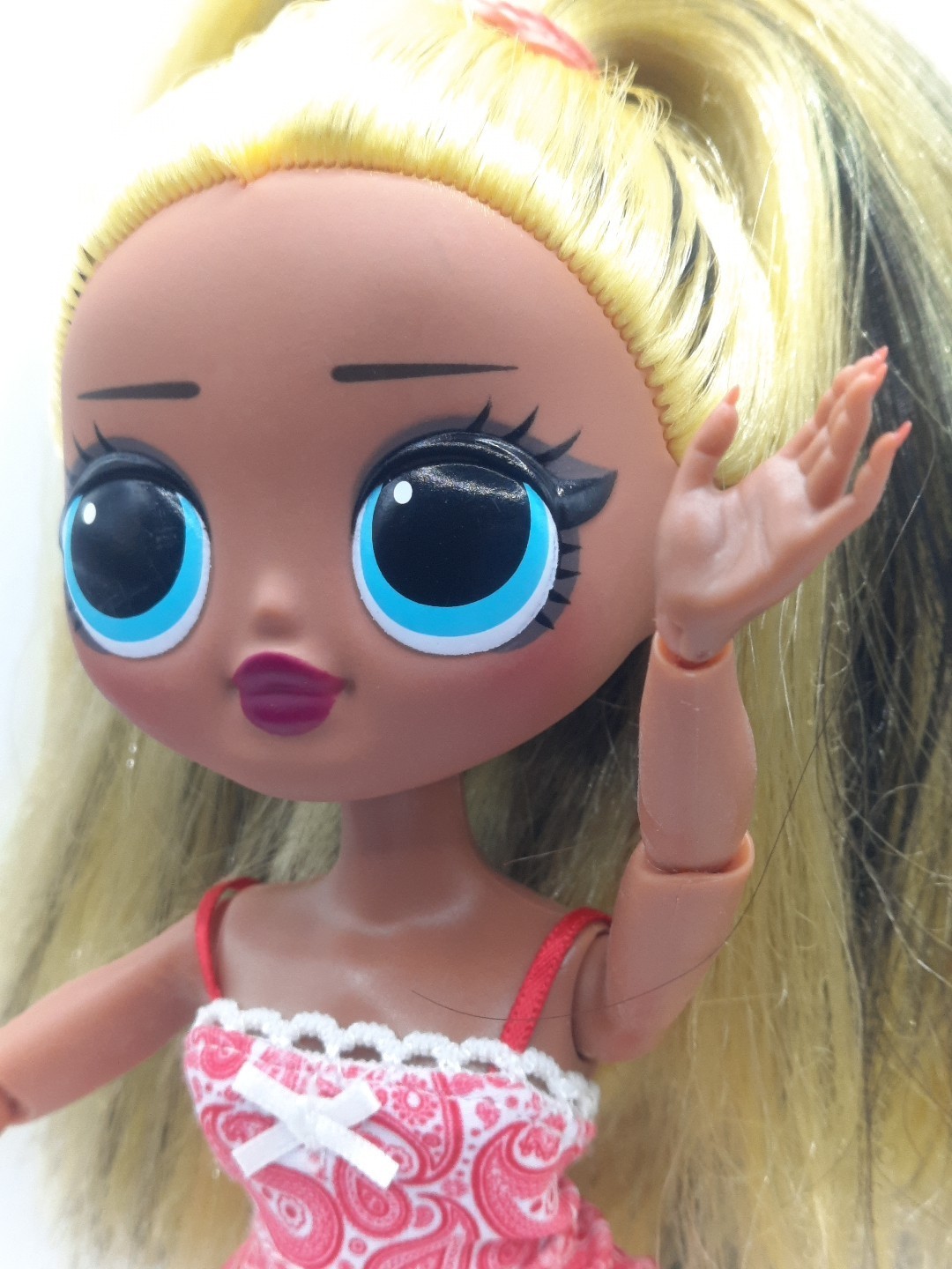 This dolls is preowned and in good condition, she doesn't have her earrings, her clothes are not original but still has alot of life left in her. Her hair needs brushed more but I just put it up in a pony