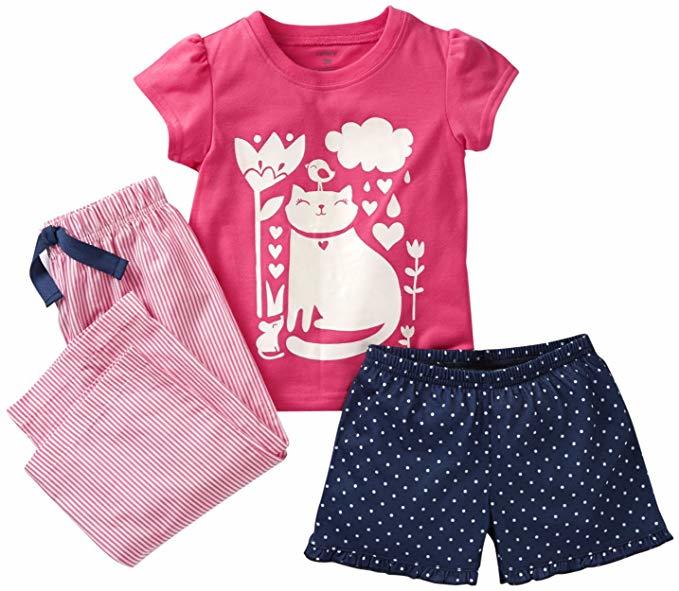 Carter's Girls Toddler 3-Piece Kitty Cat Pants, Shorts Pajama , PJ Set