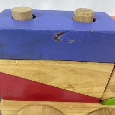 Pre-owned, definitely played with but still in good shape. One are of a block has been chipped? see photos.